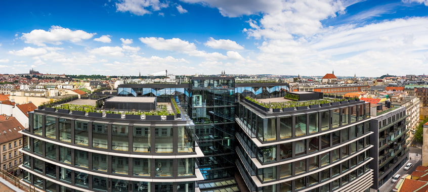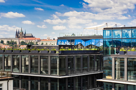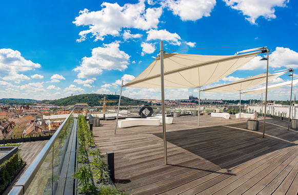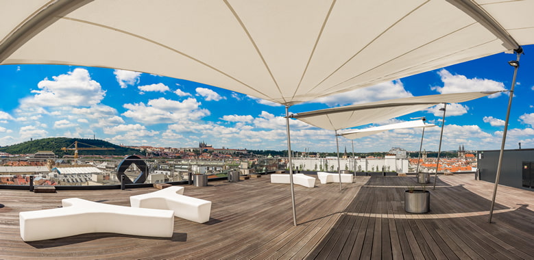 Quadrio provides its office tenants with unique access to a roof terrace with a spectacular view overlooking old Prague town, and directed towards the historically beautiful Prague castle.